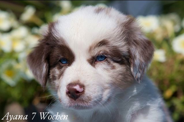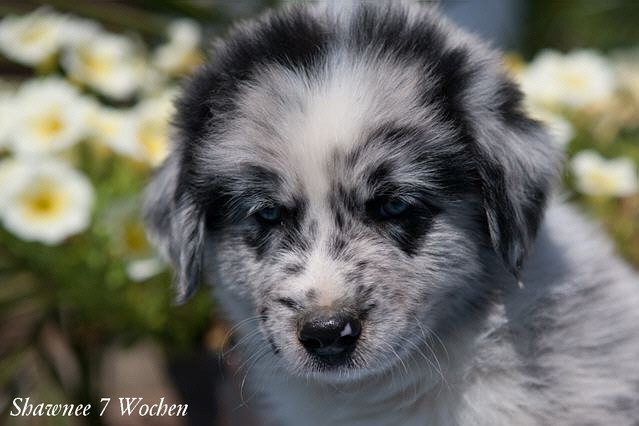 Akai ist echt fratzig und hat sich für das kleine Fotoshooting von seiner besten Seite gezeigt. Shawnee wird sicher todschick und ein stattlicher Rüde werden, aber auch alle red merle sind Mädchen spitze! Der rote Bub Amarok kommt sehr nach seinem Papa, außer, dass er tri und nicht bi ist.